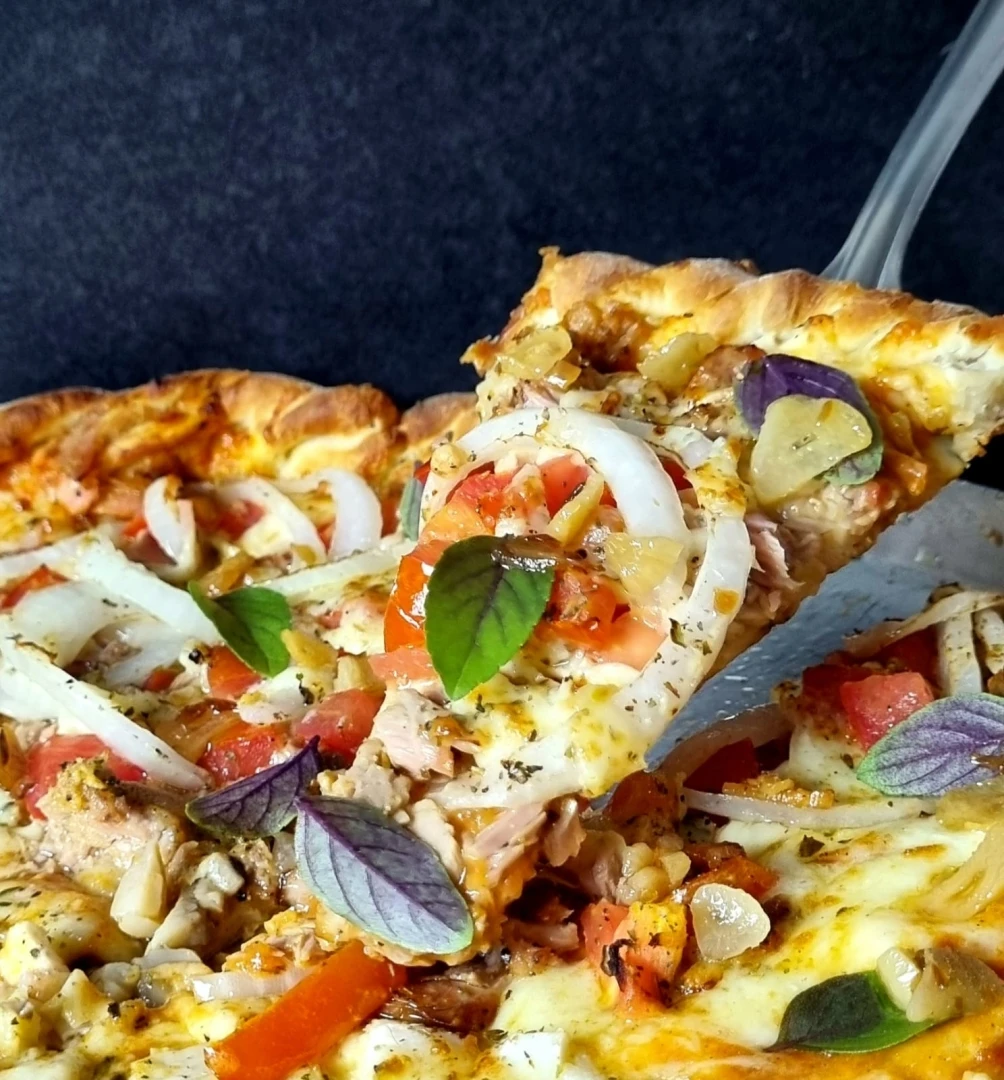 Nossa Pizza Grande de respeito, com 35 cm é indicada para 3 ou 4 pessoas e vocês podem escolher até 3 sabores para serem cortados em 12 fatias recheados de muito sabor.